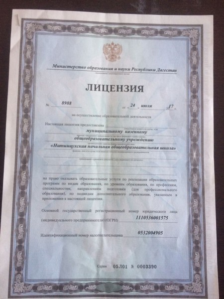 Полное наименование образовательной организации* Муниципальное казенное общеобразовательное учреждение "Нитиицухская Начальная Общеобразовательная Школа"