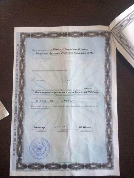 Лицензия (выписка из реестра лицензий на осуществление образовательной деятельности)